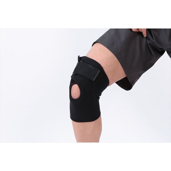 動きに合わせて伸縮素材が伸び縮みするので、ずれを防止して膝をしっかり固定。