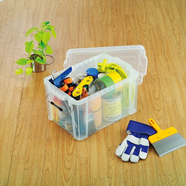商品の説明サイズ:21L?|?色:クリア金属バックル仕様のフタ付きコンテナです。 バックルの成形部分に凸面が付いているため指に引っかかりやすく、バックルをフタから取り外しやすくなっています。 重い荷物を入れて持ち運ぶ際にも手が痛くならないよう、持ち手部分に厚みを持たせました。 金属バックルの端を樹脂でカバーしていますので、作業中の軍手や衣類の引っかかりを防止します。 当社の「BOXコンテナシリーズ」との積み重ねが可能です。