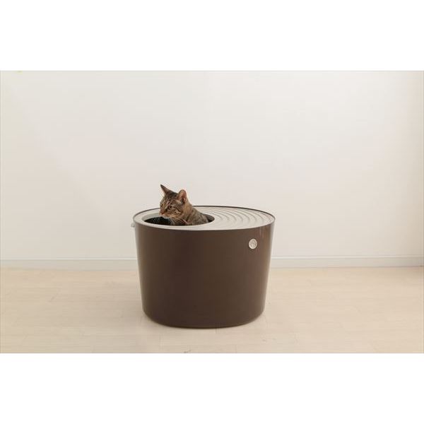 商品の説明パターン(種類):システム?|?スタイル:ブラウン上から出入り、中でトイレ♪猫ちゃんの快適さとお掃除のしやすさにこだわった上から猫トイレ。シンプルな構造と大きさはそのままに、システムタイプが登場! ■においの広がりを抑えるフタ上から出入りするタイプで、猫砂の飛び散りを防ぎニオイを軽減。フタの凸凹が肉球に挟まった砂を落とすので、お掃除も簡単です。■脚付きスノコトレー脚付きスノコがサンドを通ったオシッコだけをシートへ通します。消臭サンド・消臭シートとの併用でさらに快適に♪※消臭サンド・消臭シートは別売りです。■お手入れ・水洗いしやすい本体フタ全体が外せるのでお掃除がしやすく、猫砂やシートの交換も手間いらず。