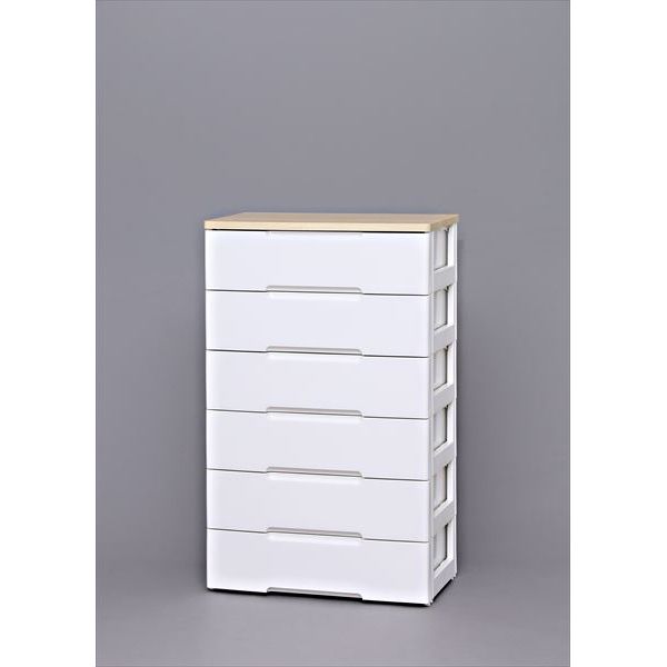 商品の説明サイズ:2)幅56cm?|?スタイル:B.5段単品?|?カラー:ホワイト/天板ナチュラルリビングの収納にピッタリの木天板付きチェストです。木天板は汚れに強く、前板は塗装家具のような質感でおしゃれなデザインです。また、引出しには開閉がスムーズな金属レールを採用しました。Yシャツを2枚並べて収納できる幅56cmタイプです。※完成品でお届けします。※上段を下段に重ねる作業のみ必要です。