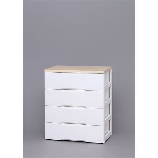 ・【どんな場所でも】プラスチック製の引き出しは中が見えないタイプなので、どんなお部屋にも置きやすい。木の天板がオシャレで優しい雰囲気。