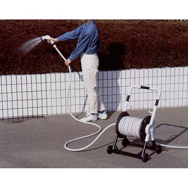 商品の説明サイズ:50M持ち運びに便利なキャスター付きのホースリールです。散水したいところまで本体ごと移動できるので、離れた場所でも楽々作業ができます。内径15mmの耐圧糸入りホースとスーパーアクアガンが付いたフルセットです。