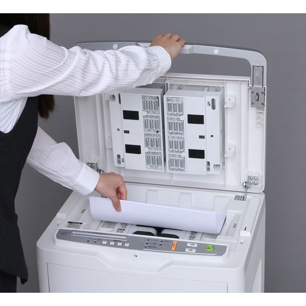 ・カットサイズ:紙/クロスカット約4×10mm、CD・DVD・プラスチック製カード類/3分割 細断速度(/分):1.6m(50Hz)・2.0m(60Hz)