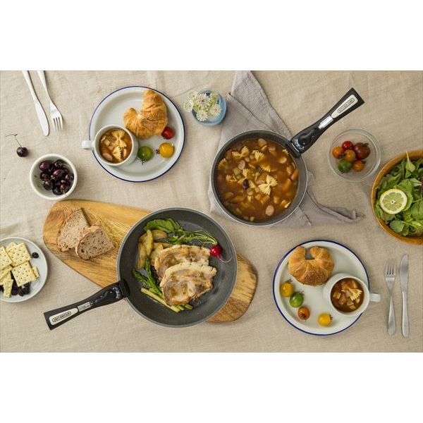 ・【商品サイズ(cm)/質量】フライパン26cm:直径27.8×高さ約6/約565g、なべ20cm:直径21.8×高さ約9.5/約500g、なべ16cm:直径約17.8×高さ約8/約350g、エッグパン:幅約22.5×奥行約13.9×高さ約5.3/約420g