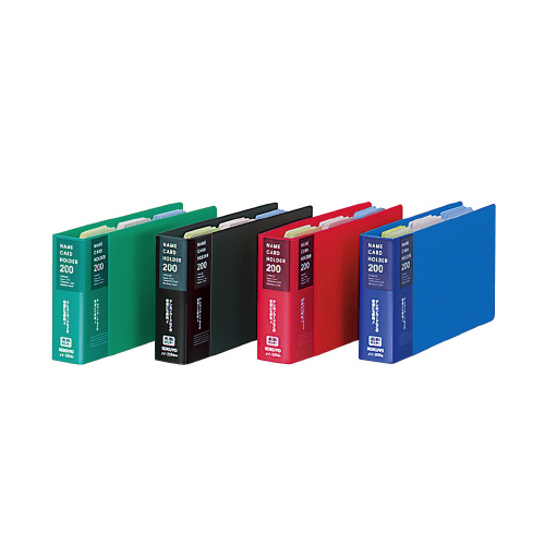 ●名刺以外のカード類の収容にも便利。●収容できる台紙枚数34枚(最大収容枚数約44枚)●3色の見出しカードは色別に分類または業種・部署別などのタイトル書きに使用できます。●替紙式●PP表紙●サイズ/110×206×35mm●替背紙式●タテ入れ●2穴(54mmピッチ)●収容可能寸法/93×57mm●中芯あり