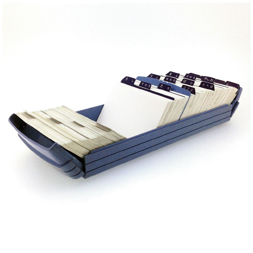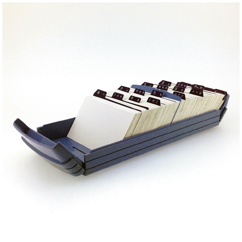 ●サイズ/99×250×73mm ●仕様/名刺 約800枚収容 ●付属品/見出しカード24枚(50音表示カード16枚、無地カード8枚)、見出しシール、仕切り板1枚 ●材質/本体・フタ:ABS ●検索のしやすいワイドオープン式