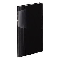 ●名刺やカードの量に応じて、背幅が変わる! <ノビータ>のカードホルダータイプ ●固定式 ●表紙/再生PP ●収容可能寸法/58×93mm ●背ポケット付き ●中芯あり ●表紙・中芯:不透明 ●360枚収容 60枚 ●ヨコ入れ ●色/黒 ●スリムタイプ ●サイズ/191×119×18~45mm ※背幅が広くなった場合、サイズの幅(奥行き)は短くなります。