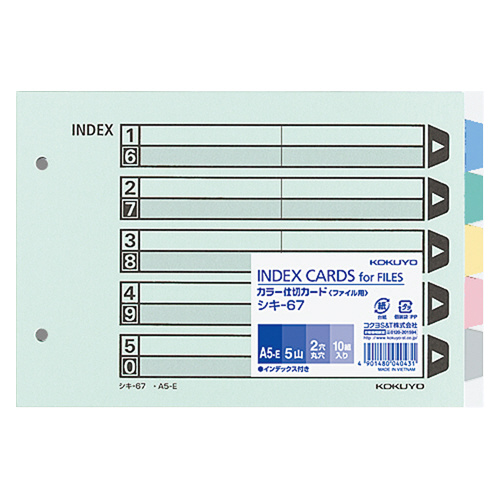 カラー仕切カード(ファイル用) A5横 5山+扉紙 2穴 10組入 シキ-67