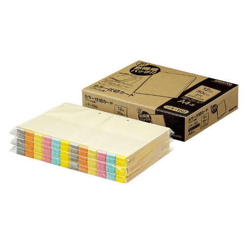 カラー仕切カード(ファイル用)徳用P A4縦 6色12山見出+扉紙 30組入 シキ-150