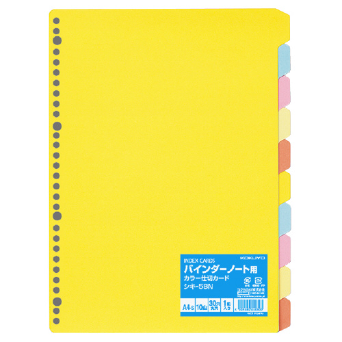カラー仕切カード(バインダーノート用) A4縦 30穴 5色10山×1組 シキ-58N