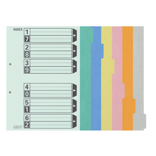 カラー仕切カード(GF用) A4縦 6山+扉紙 2穴 10組入 シキ-260
