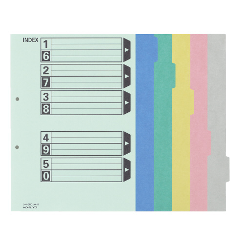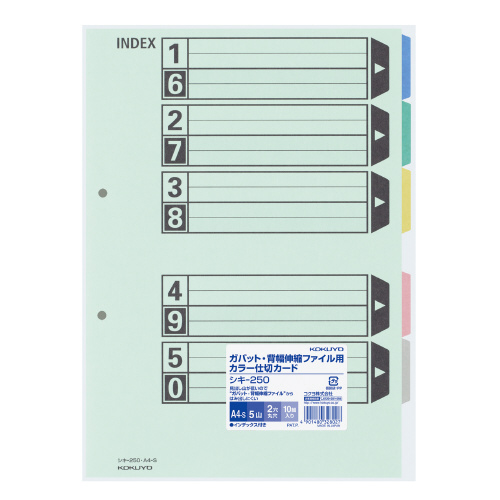 カラー仕切カード(GF用) A4縦 5山+扉紙 2穴 10組入 シキ-250