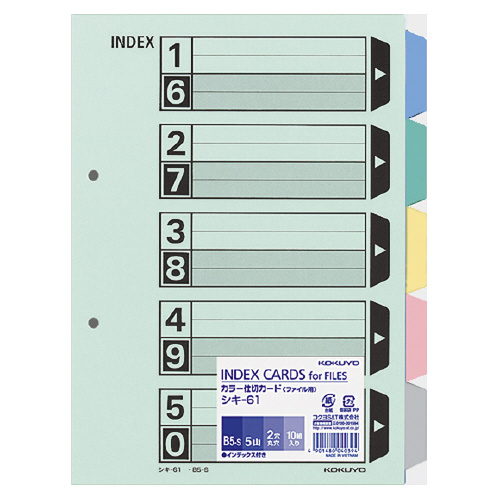 カラー仕切カード(ファイル用) B5縦 5山+扉紙 2穴 10組入 シキ-61