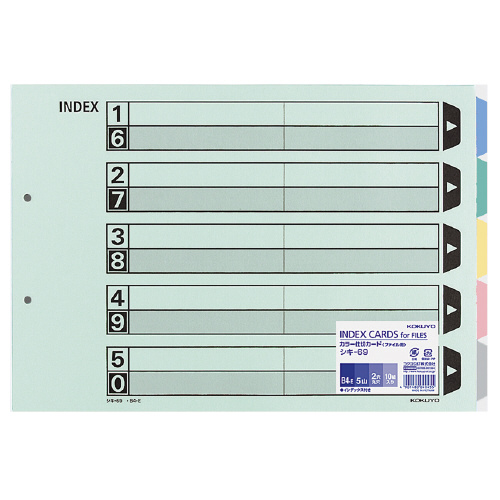 カラー仕切カード(ファイル用) B4横 5山+扉紙 2穴 10組入 シキ-69