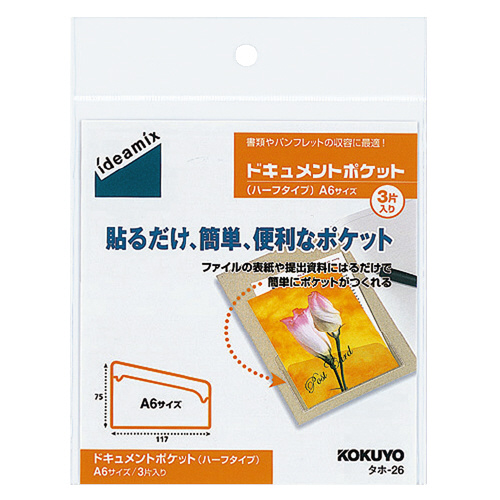 ドキュメントポケット(ハーフタイプ) A6サイズ用 3枚入 ハーフタイプ タホ-26
