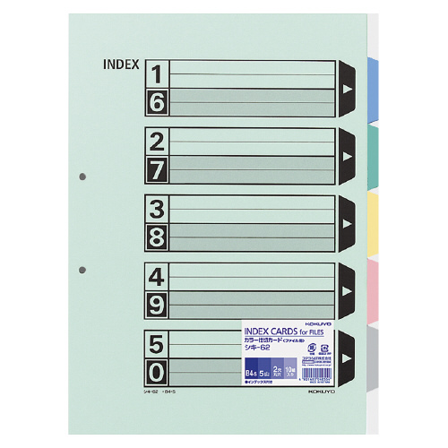 カラー仕切カード(ファイル用) B4縦 5山+扉紙 2穴 10組入 シキ-62