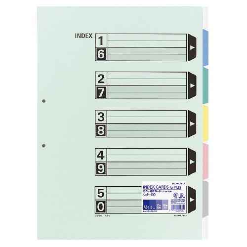 カラー仕切カード(ファイル用) A3縦 5山+扉紙 2穴 10組入 シキ-90