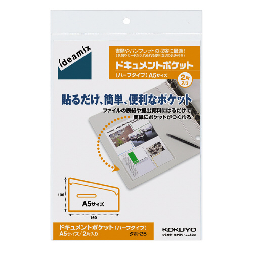 ドキュメントポケット(ハーフタイプ) A5サイズ用 2枚入 ハーフタイプ タホ-25