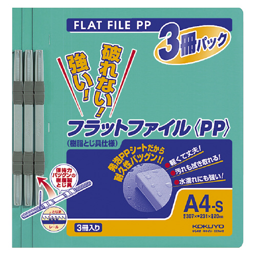 フラットファイル(PP・3冊入り) A4縦 15mm 150枚収容 緑 フ-H10-3G