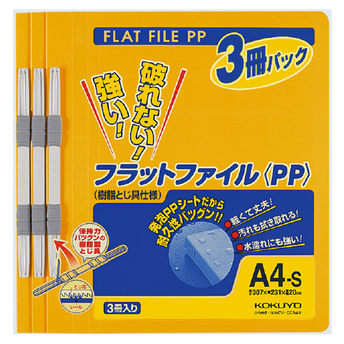 フラットファイル<PP> A4縦 15ミリとじ オレンジ3冊パック フ-H10-3YR