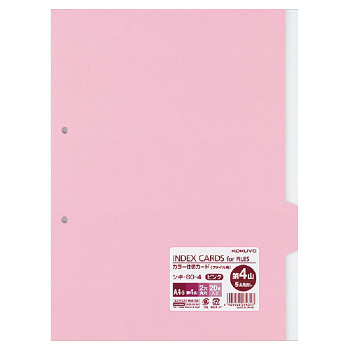 カラー仕切カード ファイル用5山見出し A4-S 2穴 第4山・ピンク 20枚 シキ-60-4