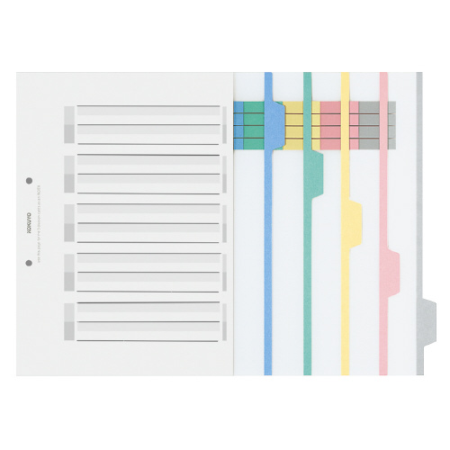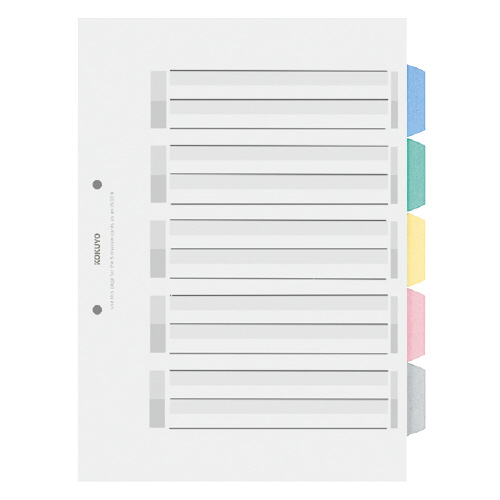 カラー仕切カード<PP>(ファイル用) A4縦 5山+扉紙 2穴 5組入 シキ-P30
