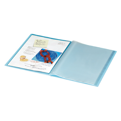 ●中紙がないクリヤーなポケットは両面印刷の切り抜きが見やすく書類の保存にも最適です。●本体の背がラウンド形状なので、持ちやすく手にフィットします。●A4-S●固定式●PP表紙●サイズ312×229×13mm●エンボス仕上げポケット●中紙なし●20枚ポケット●ブルー