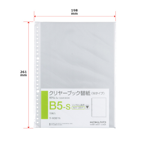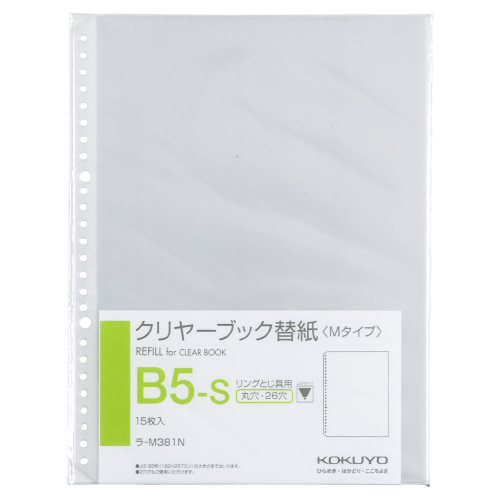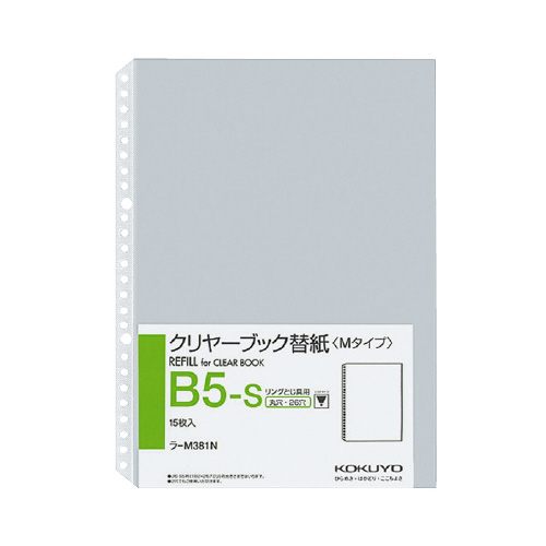 クリヤーブック替紙 B5縦 2・26穴 15枚入 ラ-M381N