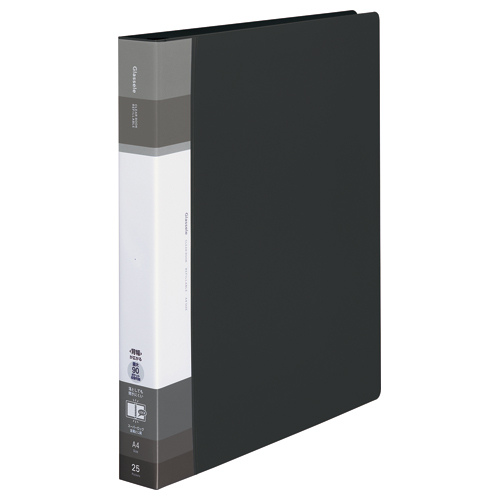 ●替紙式 ●穴数/30穴 ●リング内径/23mm ●表紙・ポケット/PP ●最大収容ポケット枚数/90枚 ●替背紙式 ●中紙なし ●エンボス仕上げポケット ●表紙・ポケット/再生PP ●とじ具と表紙の分別廃棄可能 ※「リベットはずし機」(フーRVT1)で表紙ととじ具を分別することができます。 ※背幅が広くなった場合、外寸法の幅は少し小さくなります。 ●A4タテ ●サイズ/312×266×35~54mm ●仕様:ポケット/25枚 ●色/ブラック