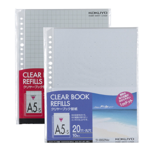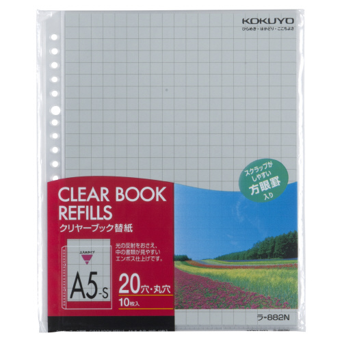 クリヤーブック替紙 A5縦 2・20穴 8mm方眼 10枚入 ラ-882N