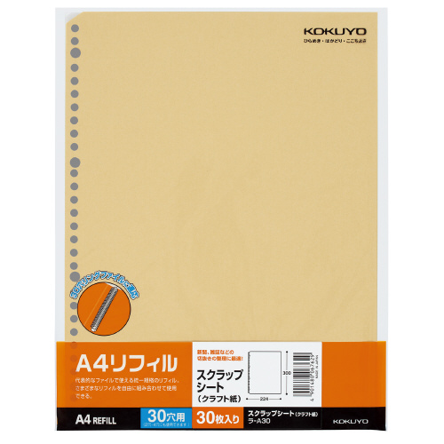 A4リフィル スクラップシート A4縦 30穴 30枚入 ラ-A30