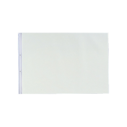 ●A3ヨコ ●タテ300×ヨコ440mm ●ポケット内寸/297×424mm ●材質/ポリプロピレン(生地厚0.08mm) ●穴数/2穴(80mmピッチ) ●ポケット仕様/エンボス仕上げ・中台紙あり ●1パック(10枚入) ●中台紙(グレー)付き ●トップインタイプ ●再生PP