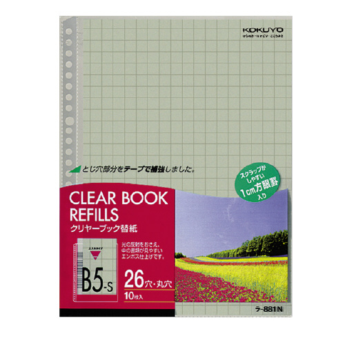 クリヤーブック替紙 B5縦 2・26穴 10mm方眼10枚入 ラ-881N