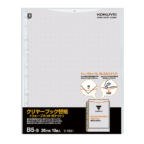クリヤーブック(ウェーブカット)用替紙 B5縦 26穴 台紙色灰 10枚入 ラ-T881M
