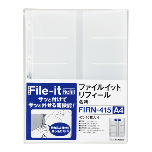 ファイルイット リフィール 名刺 A4・2穴・4穴共通、10枚入り FIRN-415