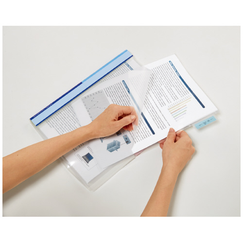 ●ホルダーの開口部に、市販のふせんを見出しにできるカバー付きです。