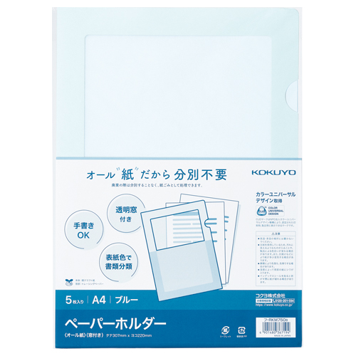 ペーパーホルダー<オール紙>(窓付き) 5枚入り ブルー フ-RKM750B