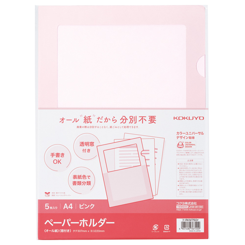 ペーパーホルダー<オール紙>(窓付き) 5枚入り ピンク フ-RKM750P