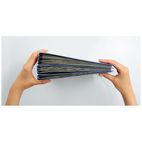 ●ウェーブカットポケット・中紙あり(表紙に合わせたカラー) ●サイズ/307×254×9~50mm ●ポケット枚数/40枚 ●替背紙式 ●表紙/再生PP、ポケット/再生PP ●エンボス仕上げポケット ●書類の出し入れがしやすいウェーブカットポケットを採用したベーシックカラータイプ ●ユニバーサルデザイン ●書類の量に合わせて背幅が変わるので、いつでもコンパクトに書類を収容できます。※背幅が広くなった場合、外寸法の幅は少し小さくなります。