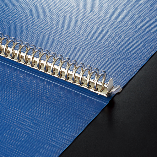 ●A4-S●サイズ/312×261×26mm●付属ポケット枚数/15枚●エンボス仕上げポケット●中紙なし●替紙式●穴数/30穴●リング内径/17mm●表紙・ポケット/PP(再生PP)●表紙表面は傷が目立ちにくいシボ加工で裏面はデザイン性の高い柄シボ●スリムな背幅●背角が丸く安心でカバンにも入れやすい●表紙が360度折り返せて机上閲覧時に省スペース●最大収容ポケット枚数/60枚●落とした衝撃によってリングが開かないスーパーロックとじ具●色/ブルー●とじ具と表紙の分別廃棄可能※「リベットはずし機」(フ-RVT1)で表紙ととじ具が分別可能
