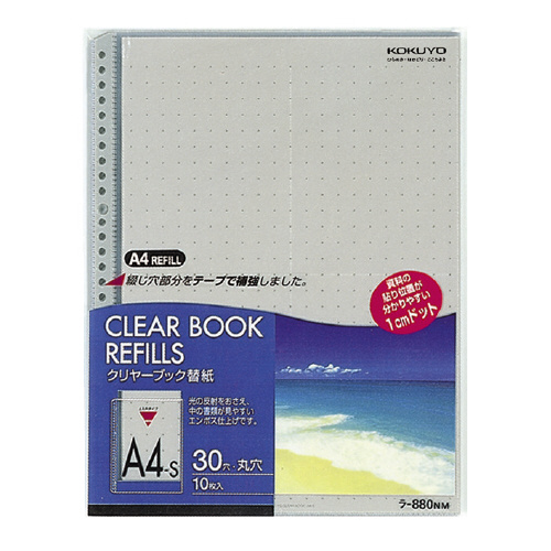 クリヤーブック替紙 A4縦 30穴 台紙色灰 10枚入 ラ-880NM