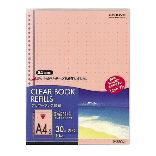 クリヤーブック替紙 A4縦 30穴 台紙色赤 10枚入 ラ-880NR
