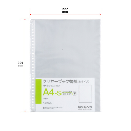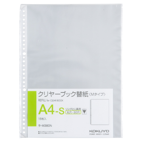 クリヤーブック替紙 A4縦 30穴 中紙無 15枚入 ラ-M380N