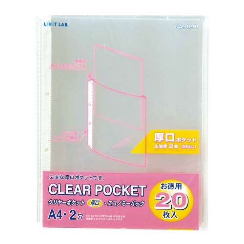 クリヤーポケット A4 2穴 厚口 1組20枚入り G49090