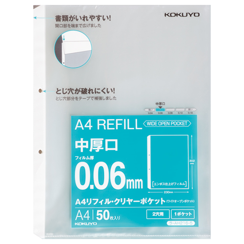 A4リフィル<ワイドオープンポケット> (2穴・中厚口)50枚 ラ-AH216-5