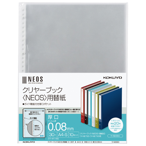 クリヤーブック<NEOS>用替紙 A4タテ 2・4・30穴 ラ-NE880