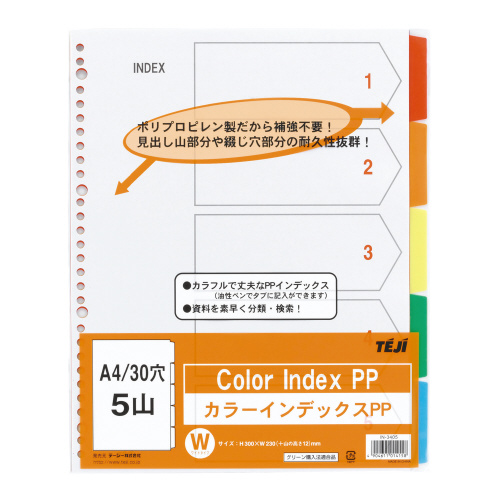 カラーインデックス PP 多穴 A4 30穴 5山 IN-3405