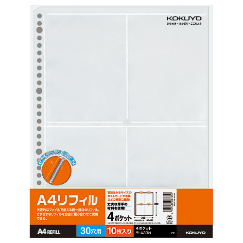 A4リフィル ポストカードホルダー A4縦 30穴 10枚入 ラ-A33N