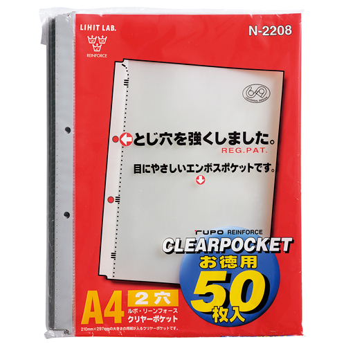 ルポ・リーンフォース・クリヤーポケット A4タテ 2穴 中台紙なし N2208